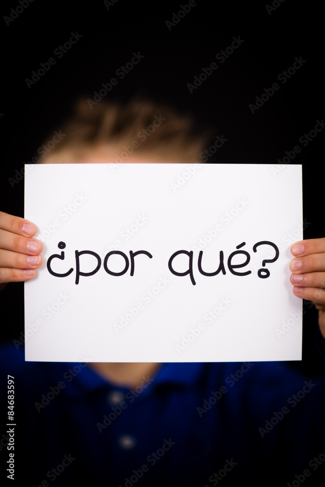Child Holding Sign With Spanish Words Por Que Why Stock Photo Adobe Stock